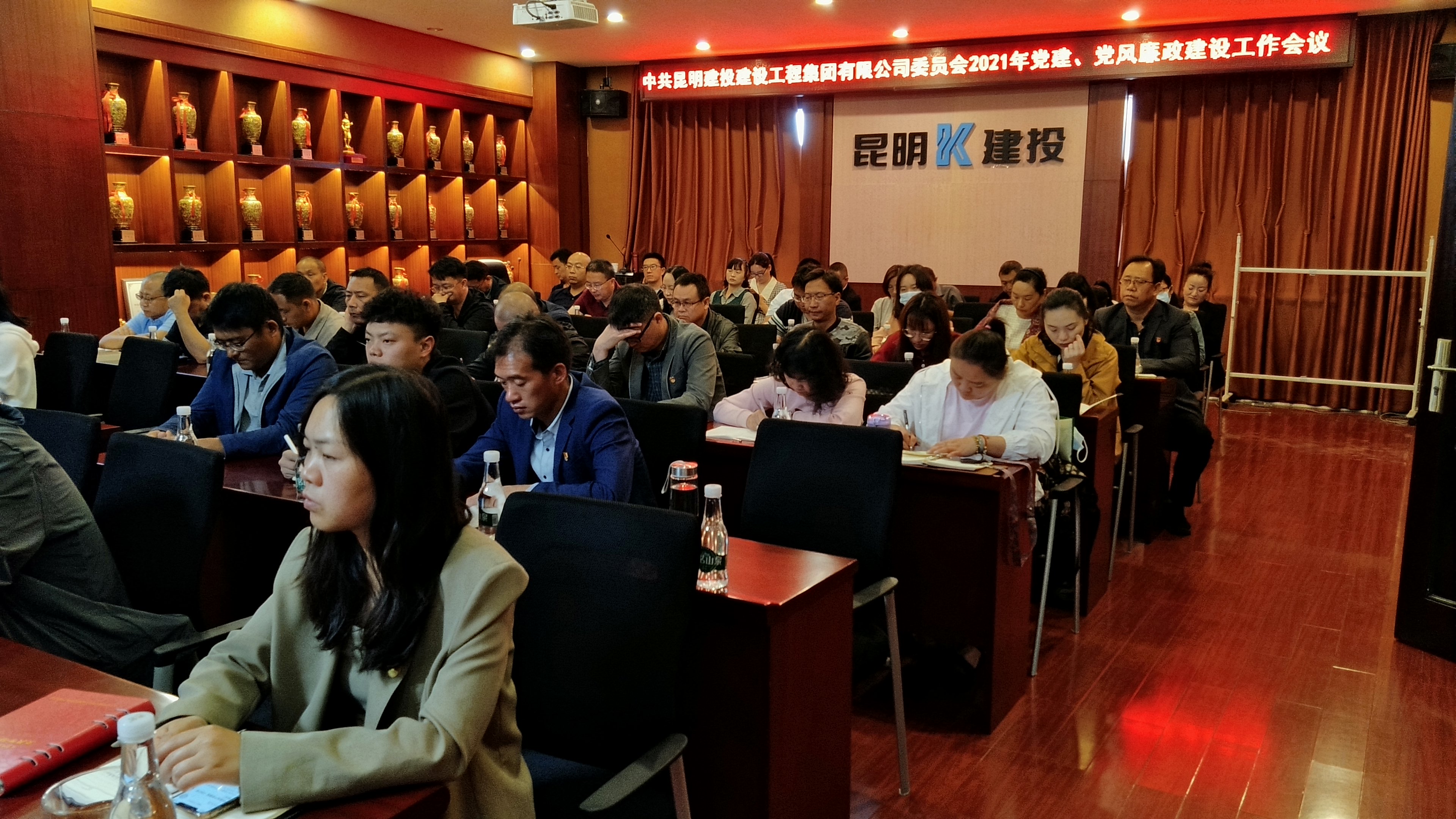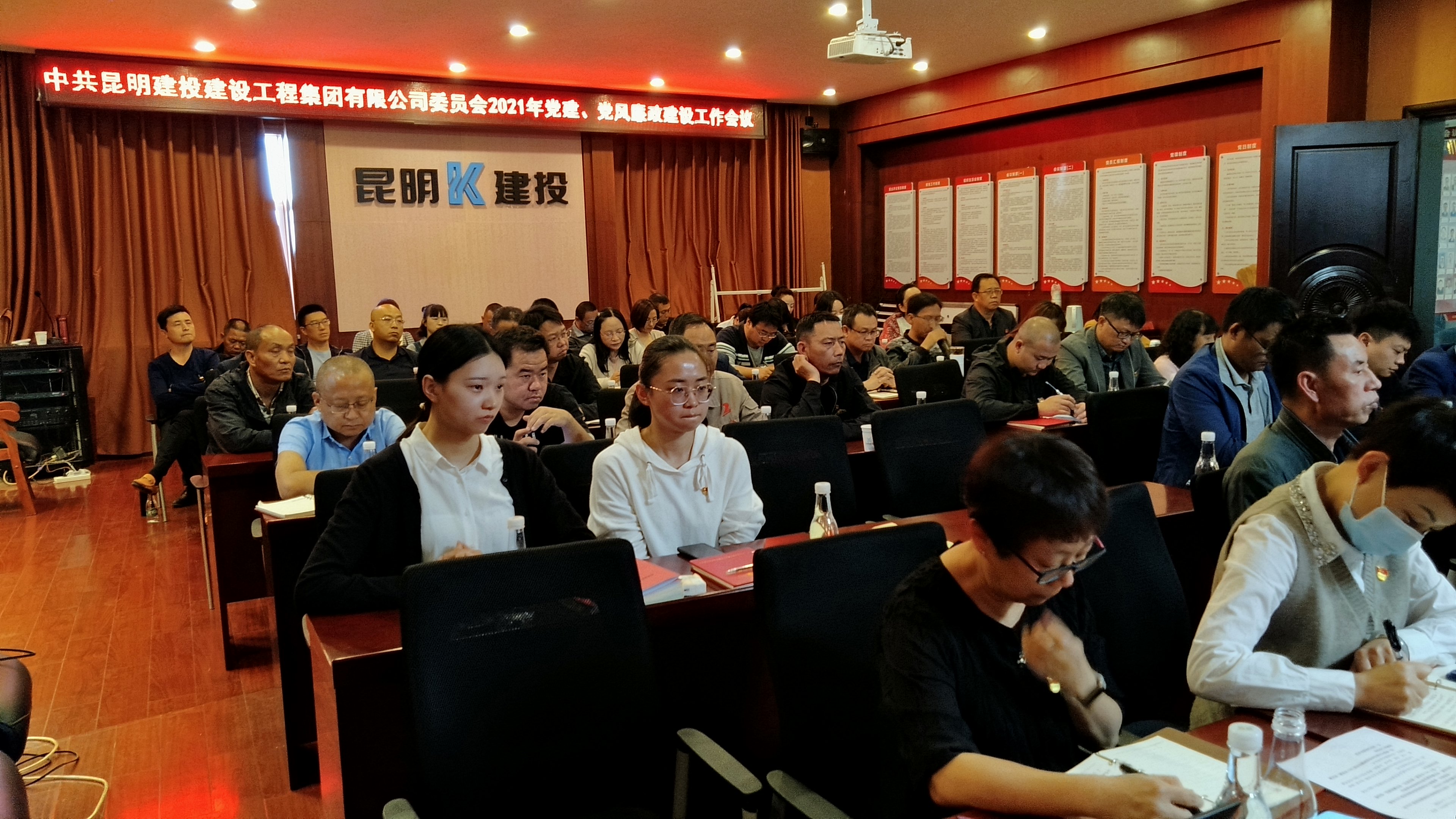 公司黨委副書記、紀委書記薛春鋒主持會議,昆明建投公司黨政領導班子成員、各部門負責人、各黨支部書記、委員、黨務人員,各分(子)公司經理共59人參會,交投公司黨群工作部李曉妍、郭旭到會指導工作。